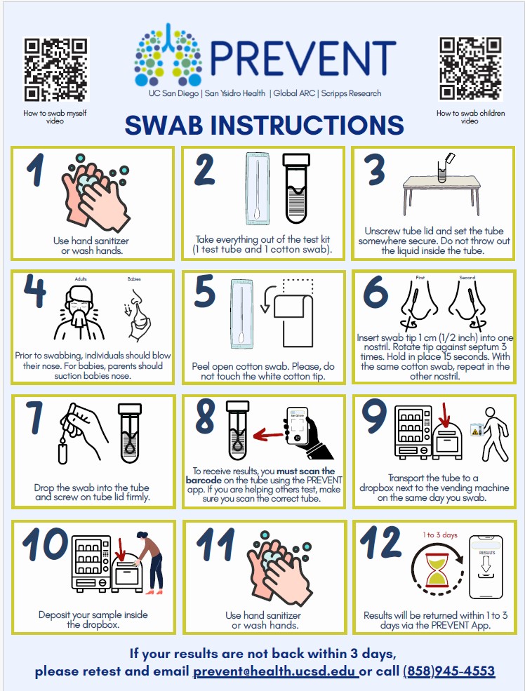 If you test positive for COVID-19, flu, or RSV, we will notify you via the PREVENT app and a nurse from UCSD may call you. If you are a patient with UCSD Health or San Ysidro Health and ask us to share your results with your doctor, we will send you results to your medical record as well.