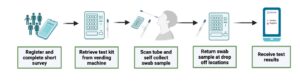 - Pick up a test kit from a vending machine